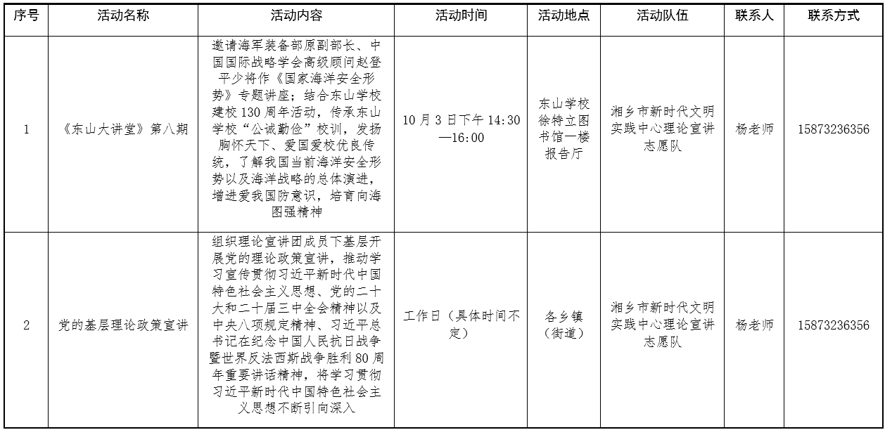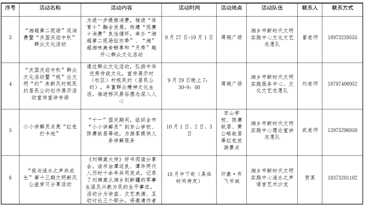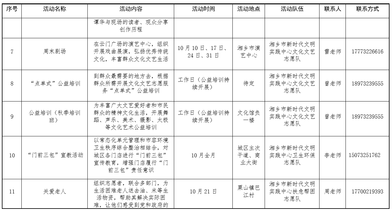附件:湘乡市新时代文明实践中心活动计划安排表(10月份).docx