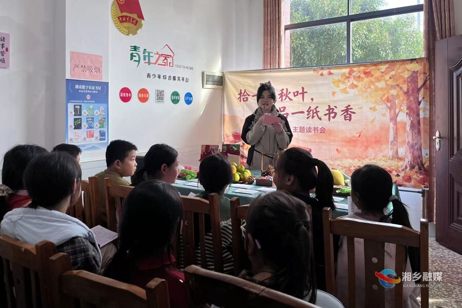 10月24日,湘乡市龙洞镇和睦村联合市新华书店在村内农家书屋开展"拾一片秋叶,品一纸书香"主题秋季读书会。来自陈赓小学的12名五年级学生通过经典共读、创意手工等活动,在自然与文学的交融中感受阅读魅力。
