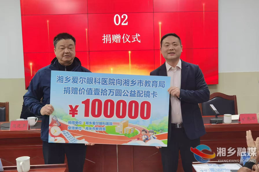 启动仪式上,湘乡爱尔眼科医院向市教育局捐赠总价值10万元的公益配镜卡,将为全市10所学校的100名品学兼优、家庭困难且有配镜需求的学生,提供专业的验光及配镜服务。市教育局向爱尔眼科医院颁发“情系教育 爱心助学”荣誉牌匾,对其积极投身公益、助力教育事业的行为予以表彰。