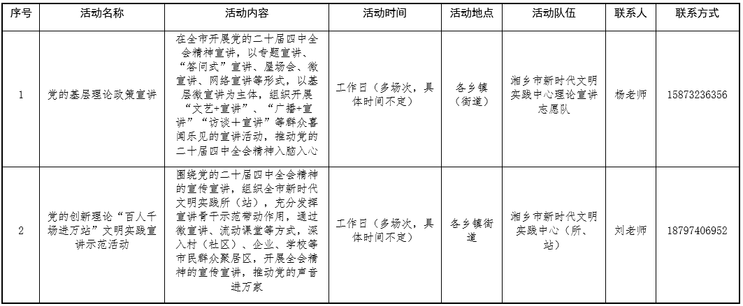 湘乡市新时代文明实践中心活动计划安排表