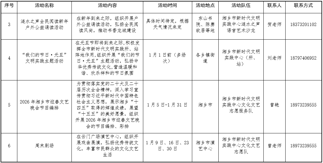 附件:湘乡市新时代文明实践中心活动计划安排表(1月份).docx